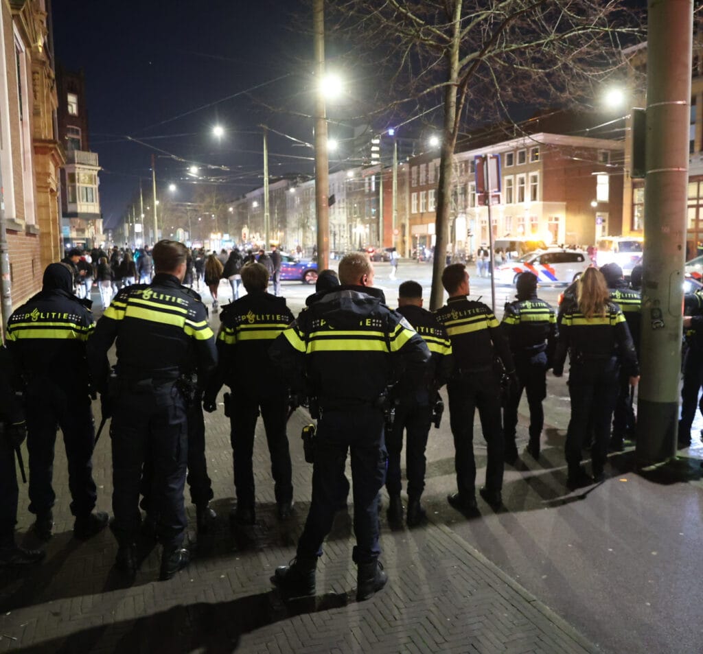 Het pand werd ontruimd en later vormden agenten een linie om bezoekers die voor het gebouw bleven hangen uit de Prinsegracht te drijven. Een 17-jarige bezoeker uit Monster werd ter plekke aangehouden.